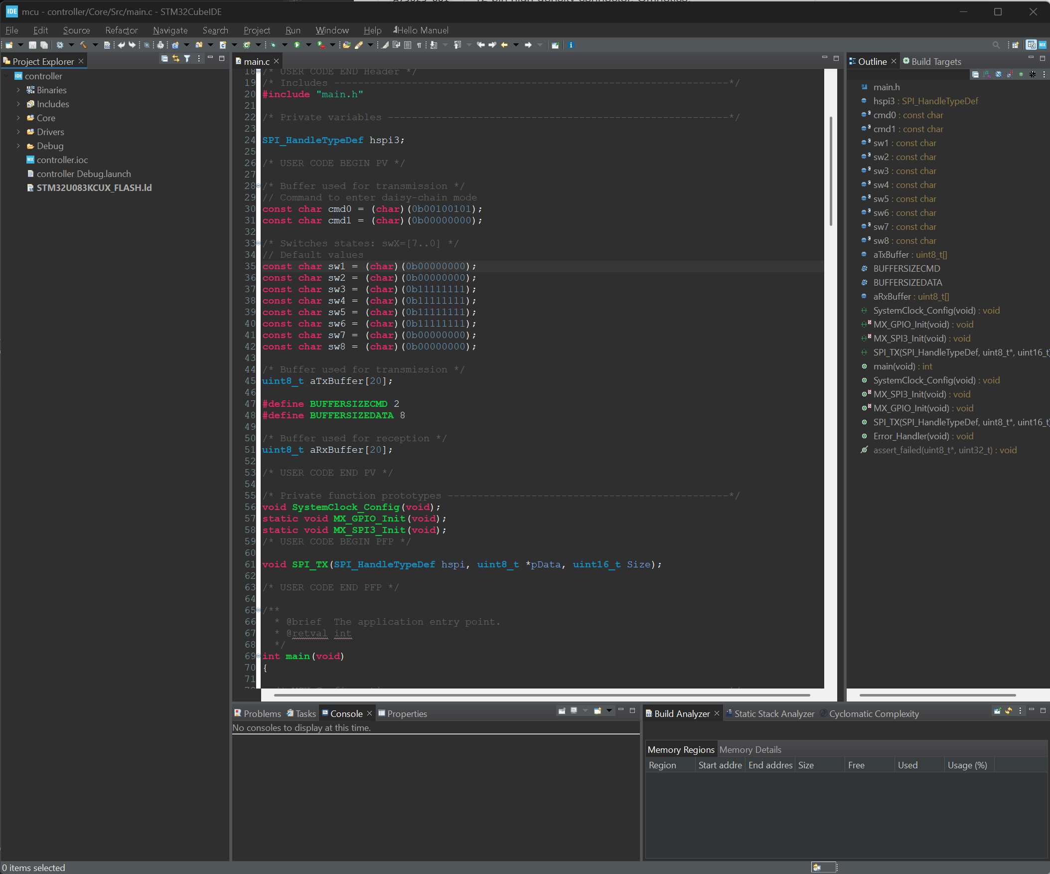 Figure 7. Screenshoot of the STM32CubeIDE with the main.c file in the center panel.