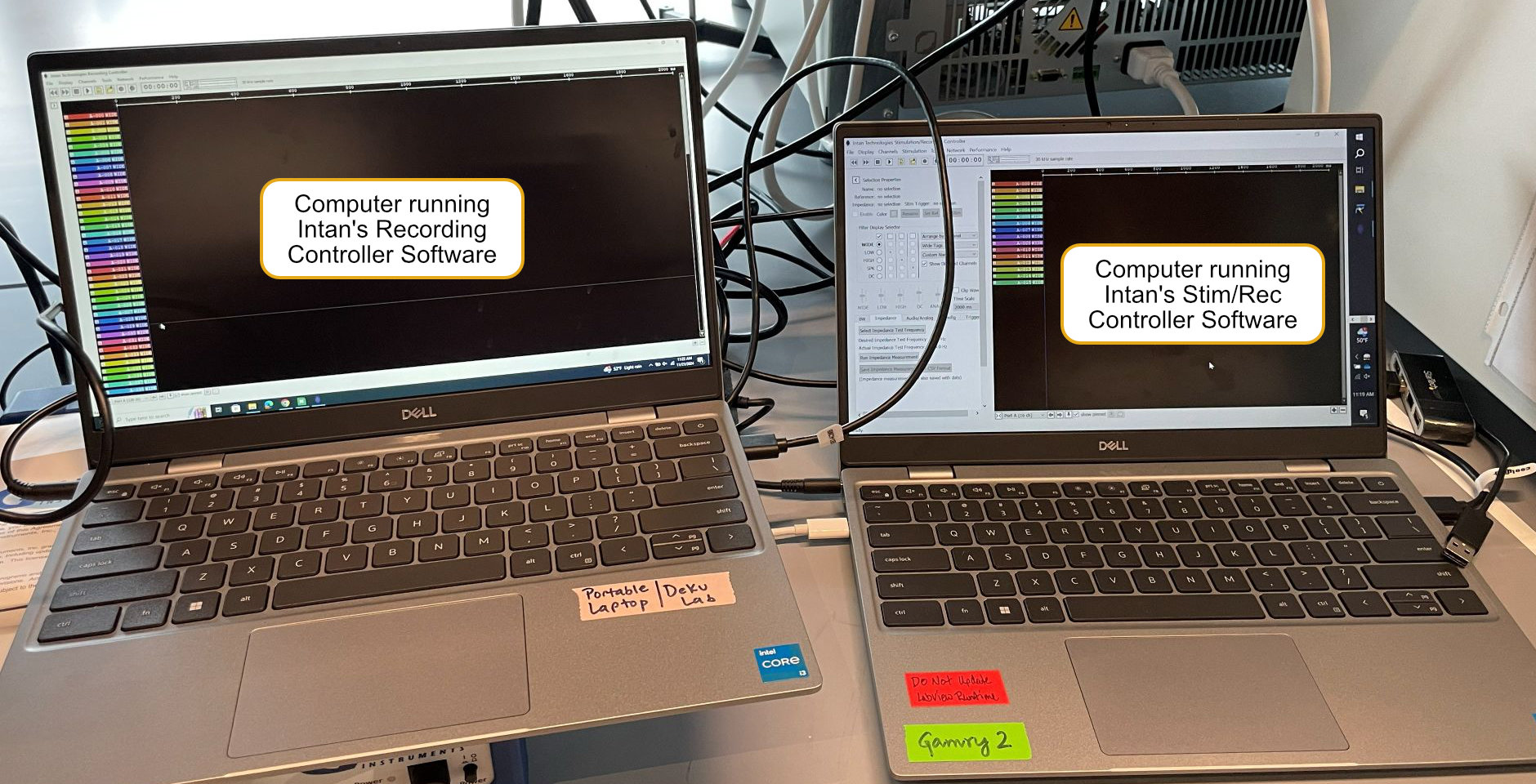 - Install Intan RHD Recording Controller Software into Computer 1 (see Intan User Guide).