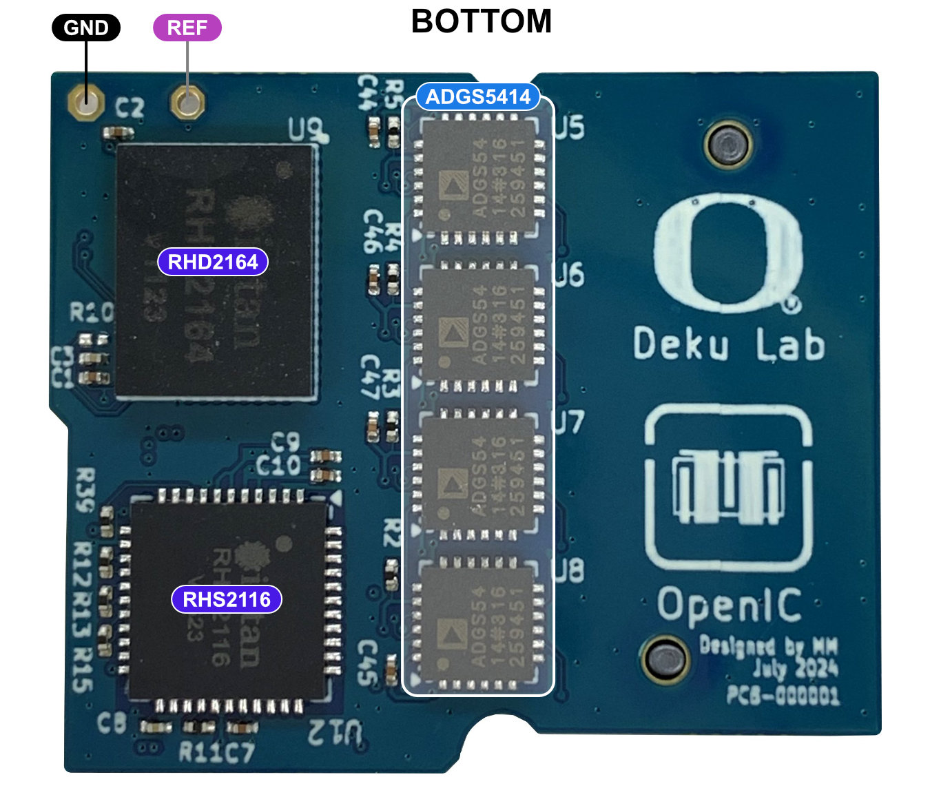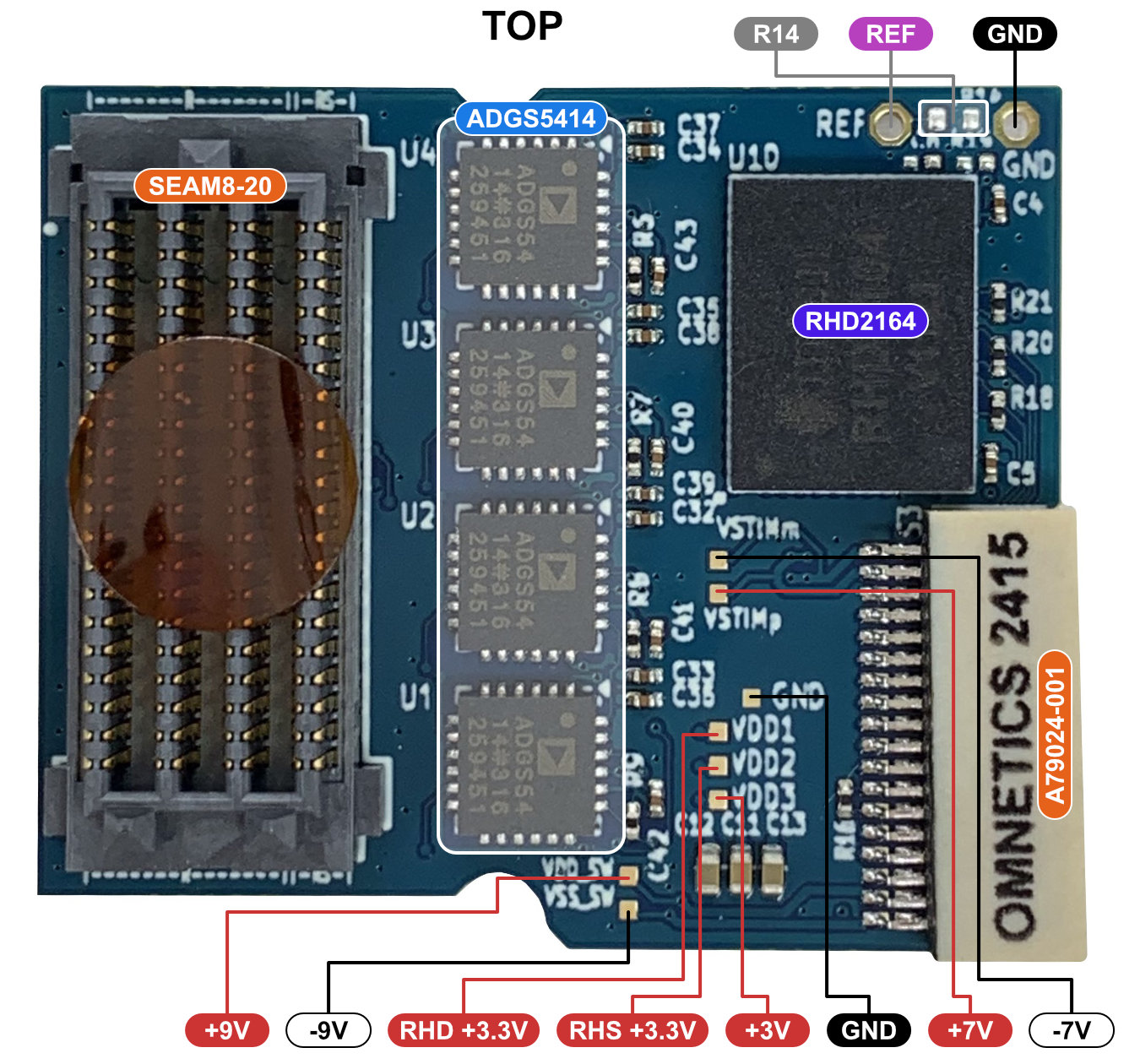 REFandGNDpads using platinum wires soldered into the through-holes on the headstage. - Keep