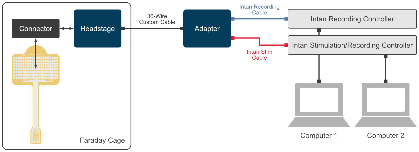 - Install Intan RHS Recording Controller Software into Computer 2 (see Intan User Guide).