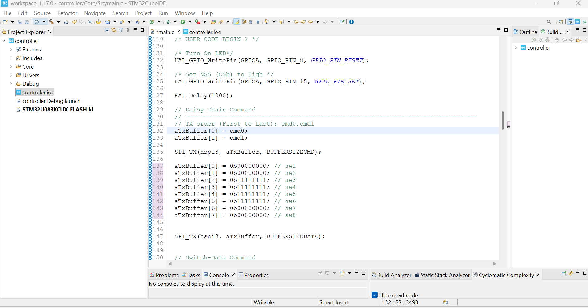 You can change the state of each of the switches in the eight octal ADGS5414 by updating the values of the constants shown below. Notice that the bit swX[Y] corresponds to the Y switch of component uX, where X,Y \(\in \{1,2,...8 \}\) . The value of 0 indicates the switch is open whereas the 1 indicates it is closed.